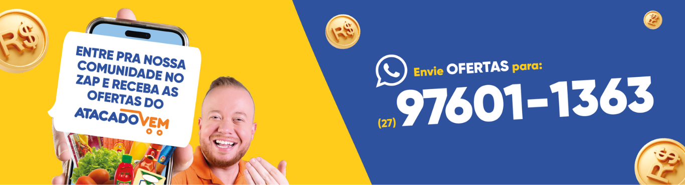 O preço baixo vem pra ficar! O Atacado Vem chegou no mercado capixaba para oferecer aos consumidores preço baixo em suas compras, sejam elas no atacado ou no varejo. O Atacado Vem pertence ao Grupo Coutinho, que há mais de 45 anos opera no setor varejista no estado do Espírito Santo.
